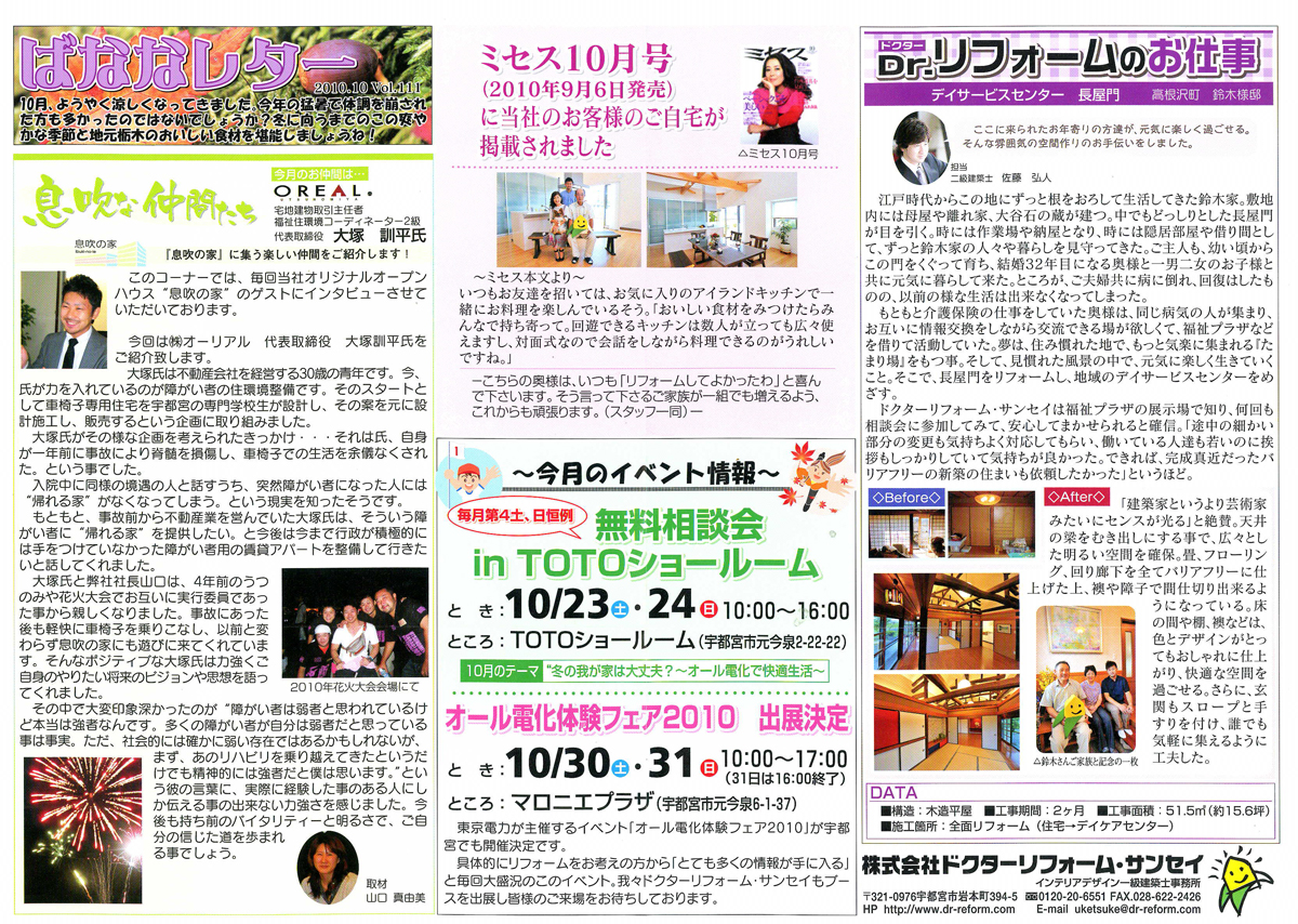 ドクターリフォーム・サンセイ様のばななレターに弊社社長の記事が掲載されました 画像をクリックすると大きい画像が開きます。
