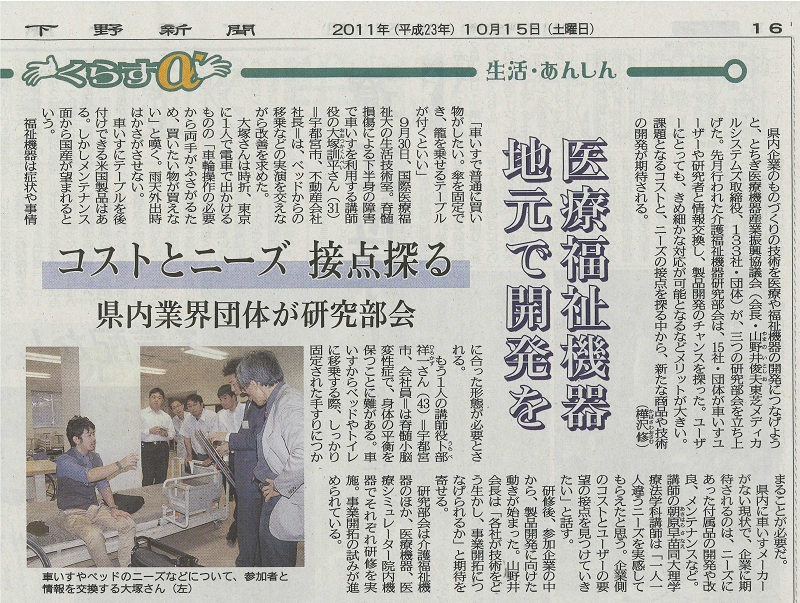 10月15日の下野新聞「くらすα」に掲載されました。 画像をクリックすると大きい記事が開きます。